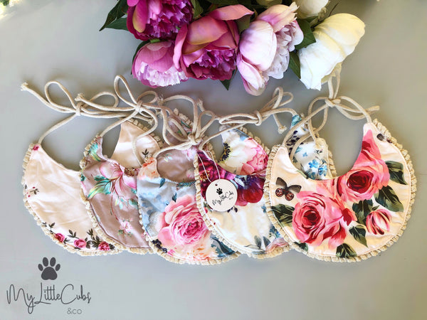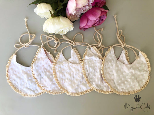 The Inflorescence Collection bibs reverse side are white with pom pom details. See picture for reference 🐾