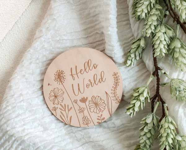 Hello World / Floral - Birth Announcement Plaque