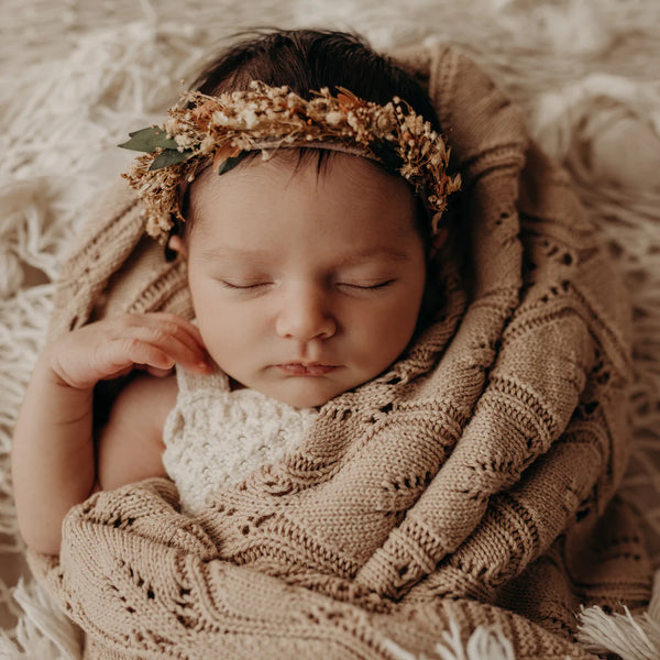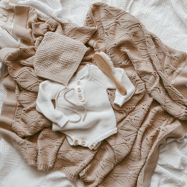 Keep your little love cosy and warm in our beautiful, soft 100% cotton Heirloom Willow Knit Blanket. Measuring approx. 80cm x 100cm (39x31 inches) in size, it is perfect for use in a pram, bassinet, cot, and to swaddle in the cooler months.