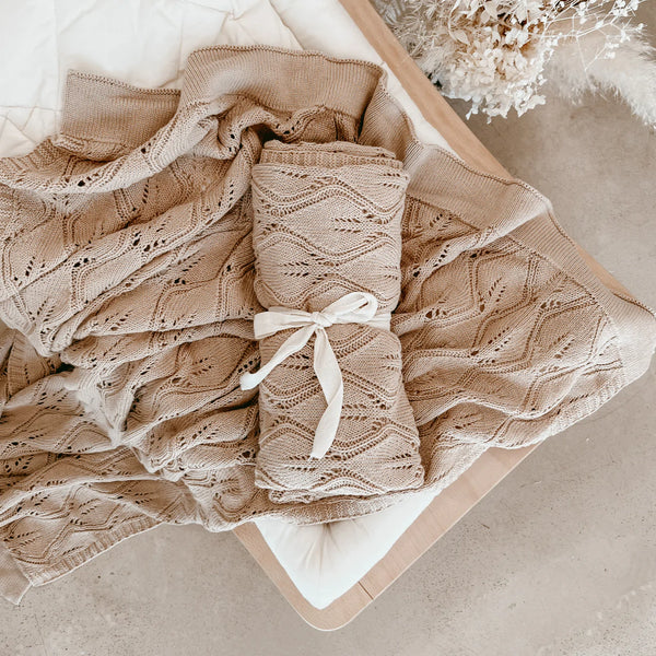 Heirloom Willow Knit Blanket - 100% Cotton - Cookie