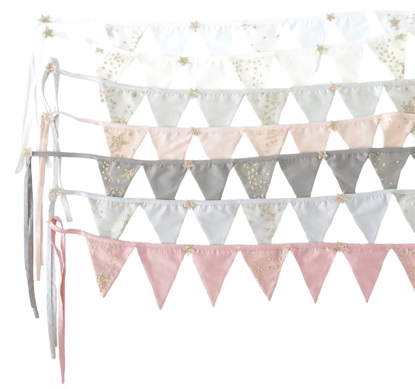 Glitter stars bunting for decorating little girls room. This adorable bunting is embellished with glittered stars & sparkles and the perfect decor to decorate little nurseries and little girls rooms. All buntings are available in matching quilt colours.