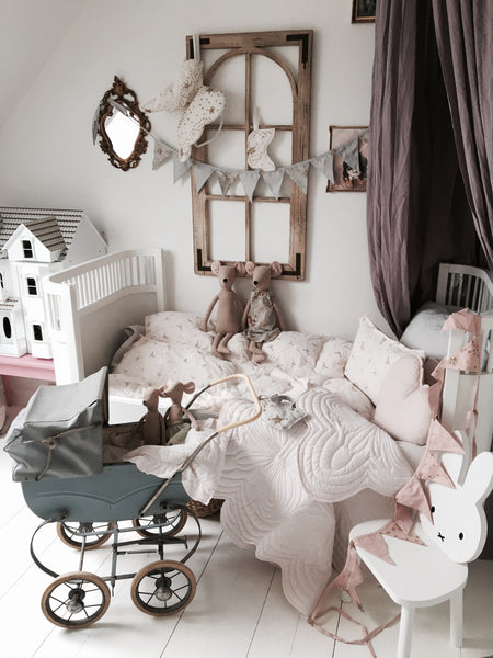 Quilted baby playmat or bedspread with matching quilted pillow for little girls cot or crib