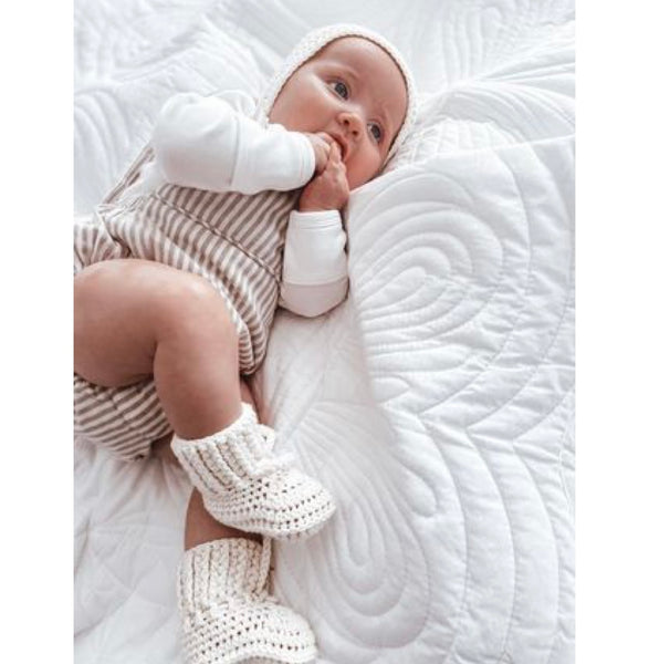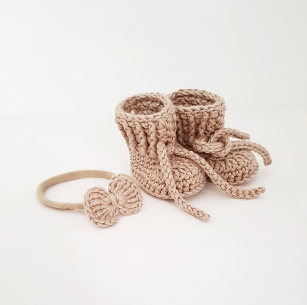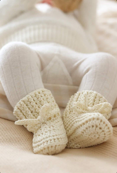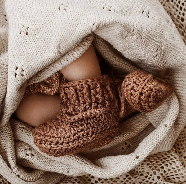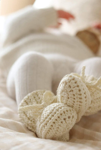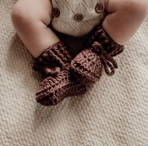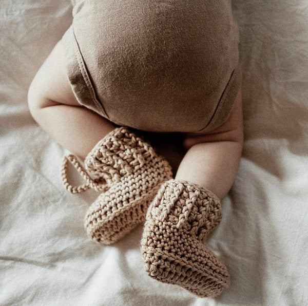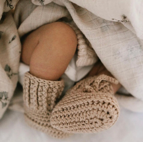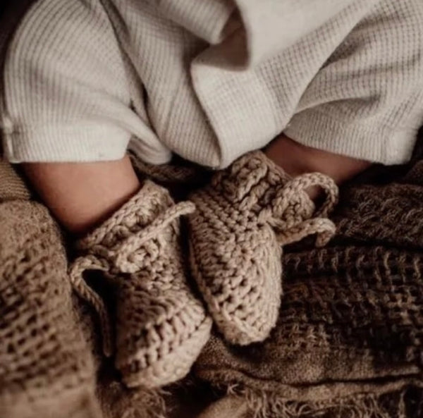 Handmade booties are the perfect thoughtful baby shower gift or addition to any newborn coming home outfit.