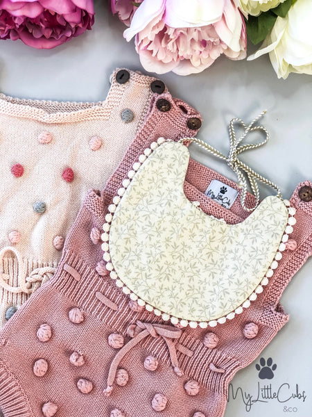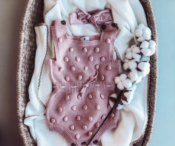 This Romper is just gorgeous! The details of pink pom poms and wooden buttons are too pretty. Perfect for those summer days, pair with a pair of stockings and cute shoes!
