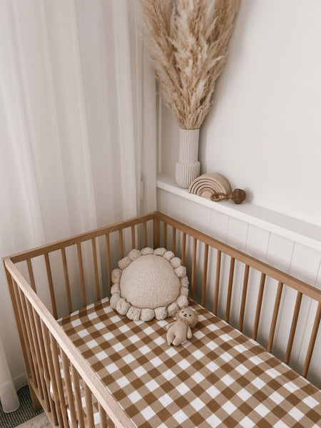 Made from soft, breathable and lightweight cotton. Fully elasticized design and sized to fit standard Australian Cot and Basinet Mattresses. Pop Ya Tot cotton muslin sheets are pre-washed to increase softness and we use premium cotton to increase durability and minimize pilling.