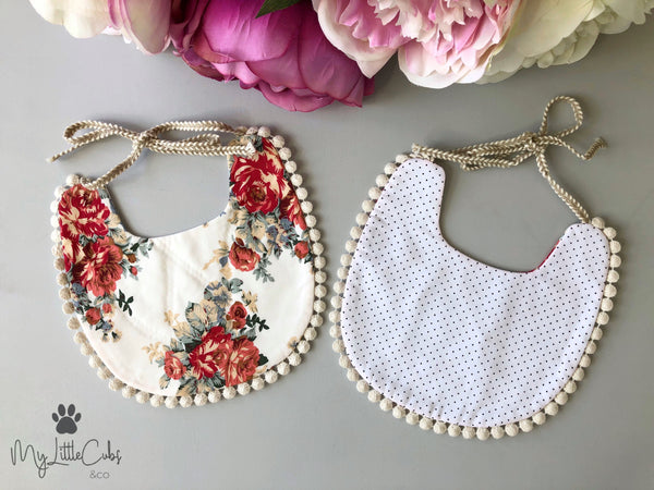With gorgeous detailing to chose from, there’s a variety of bibs lined with soft, fluffy pom-poms or vintage strings - take your pick!