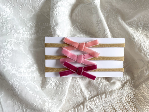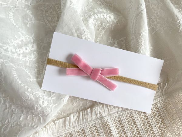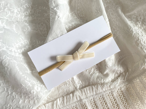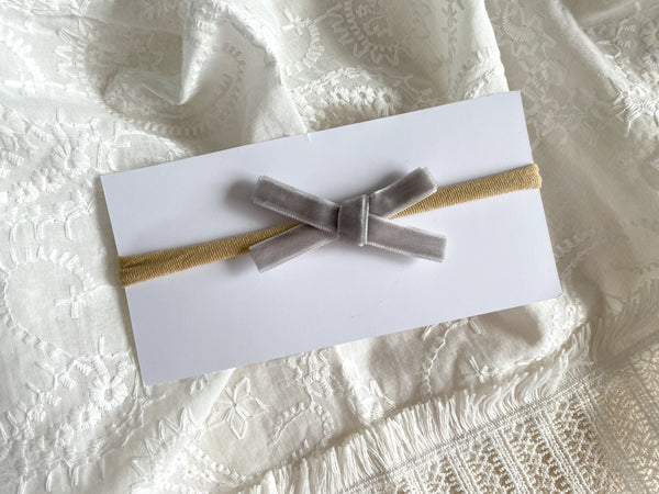 Handmade velvet bow on a stretchy soft nylon band.